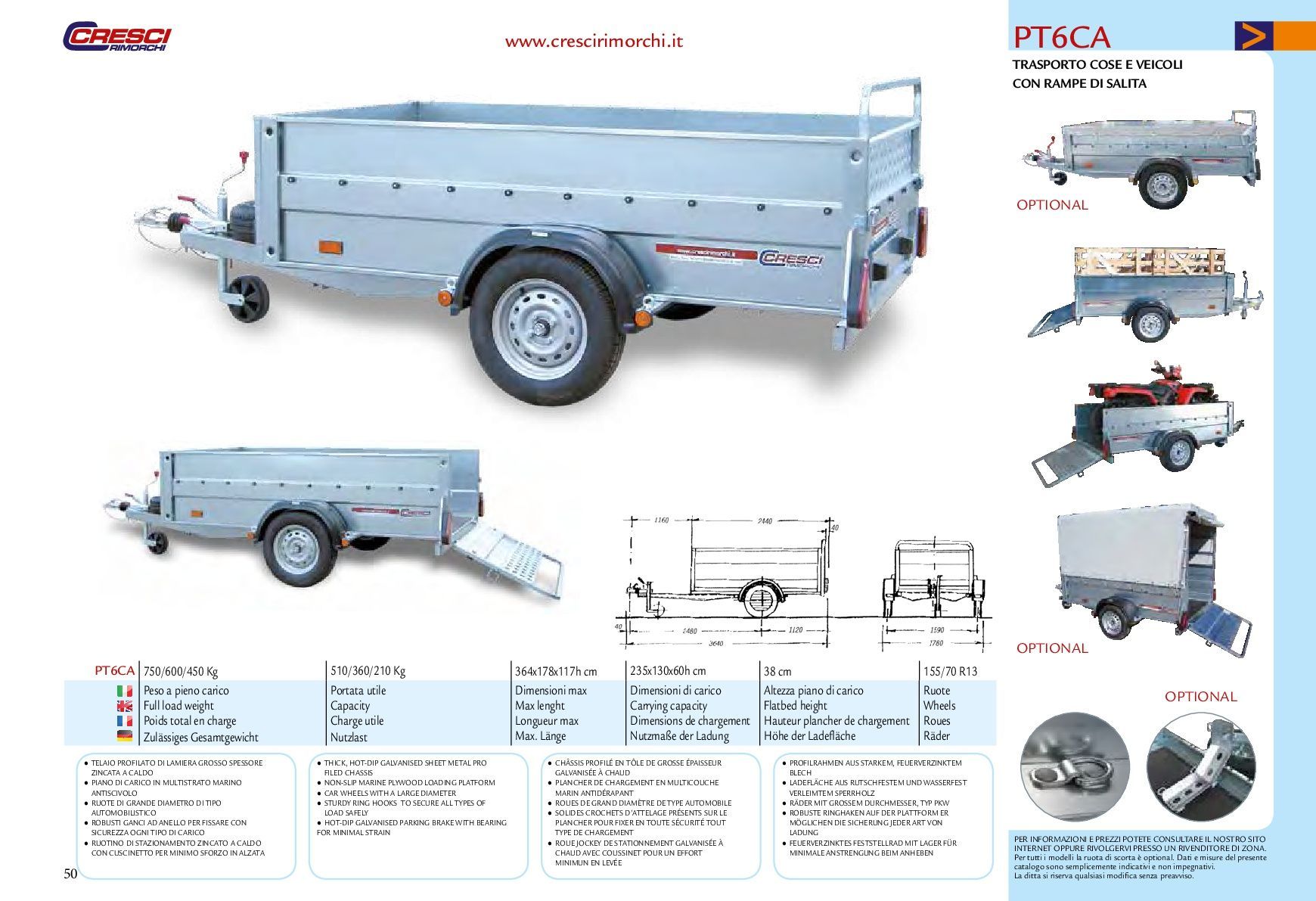 RIMORCHIO PORTAMOTO CRESCI PT6CA CON RAMPA DI CARICO.